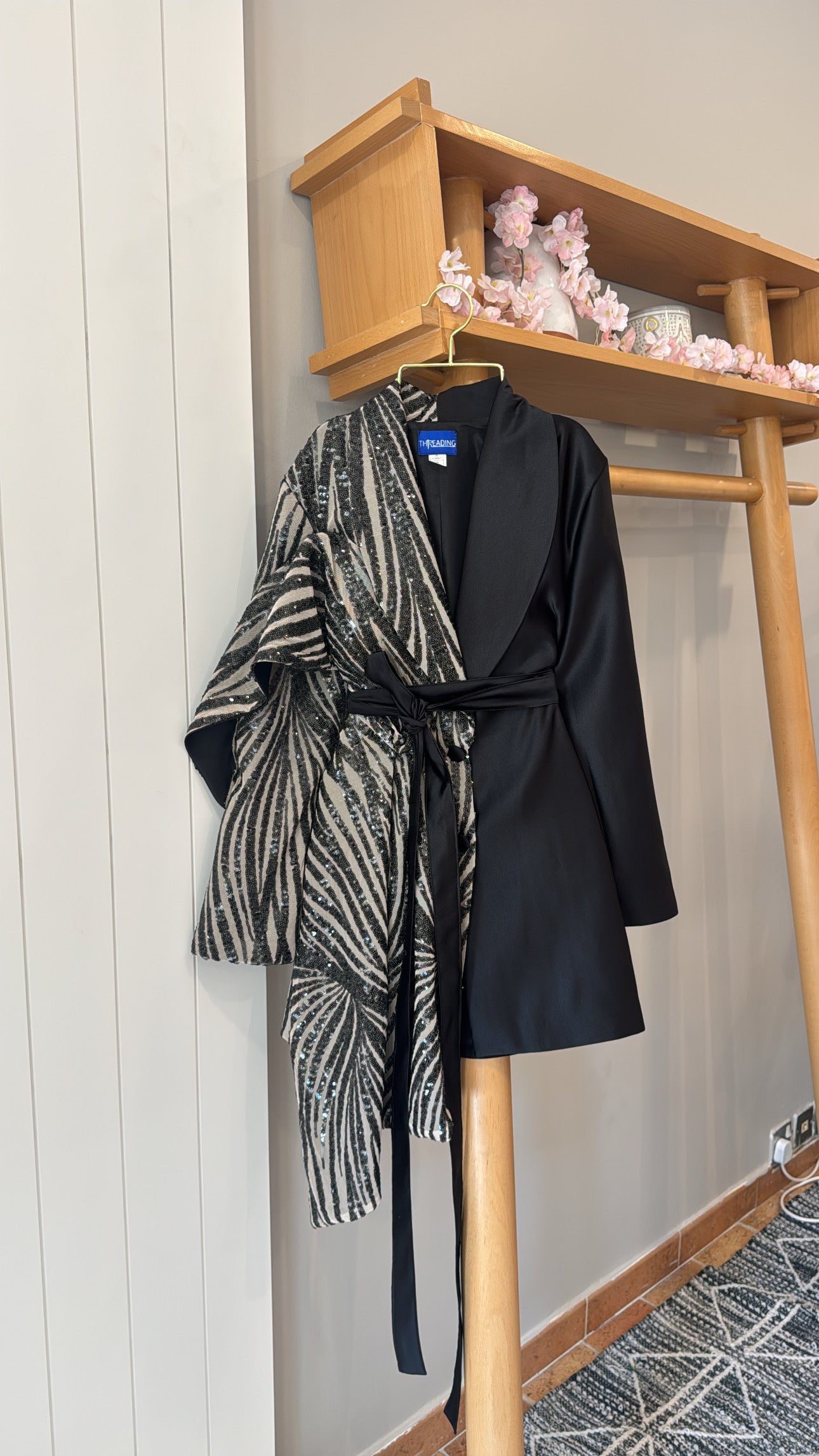 Asymmetric blazer, perfect for occasions. We need the short side length only.