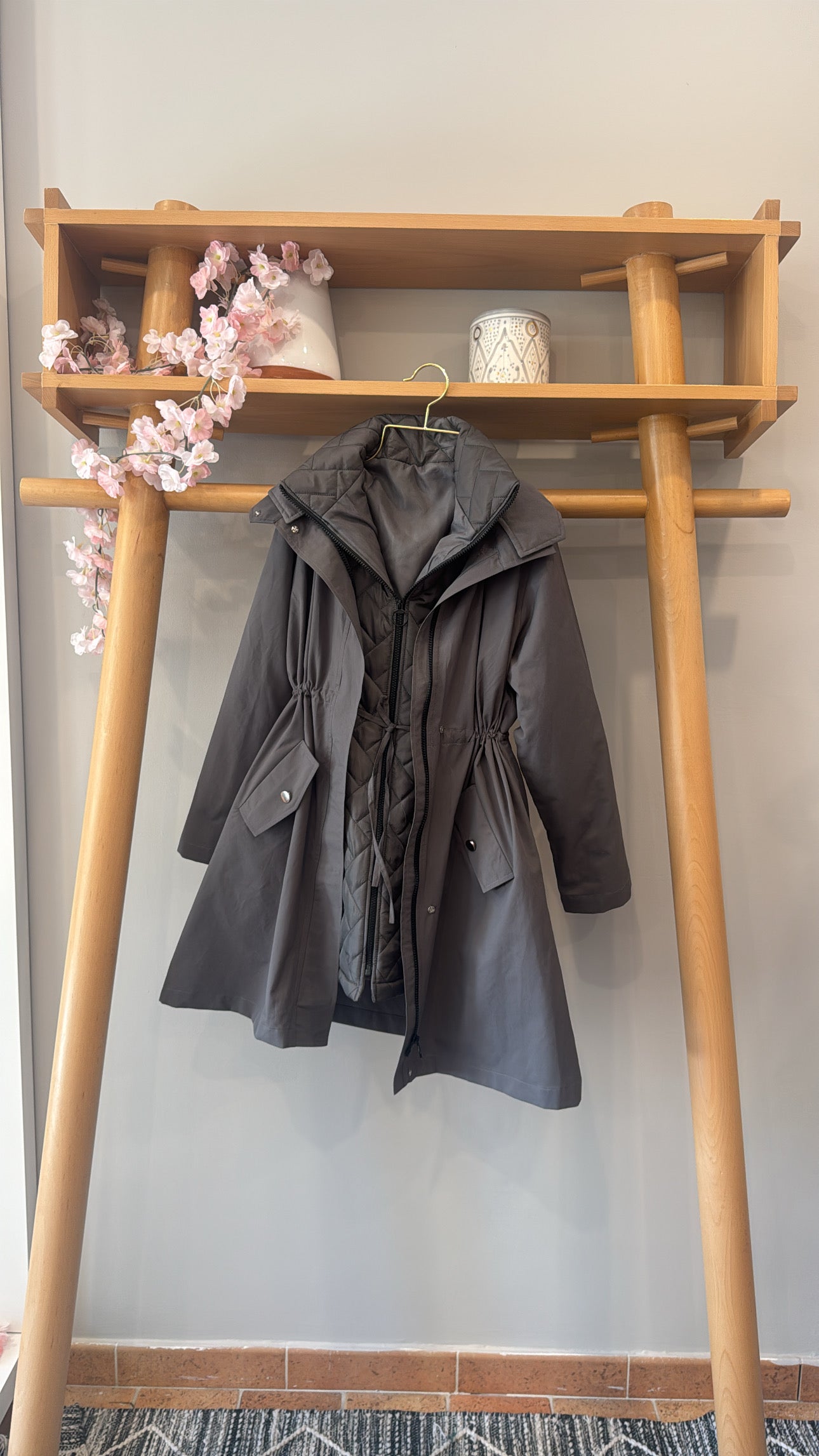 Double rain coat! This doubled coat you can style them separately or mix and match for a different look! Perfect for cute rainy day outfit, for walking, you can also wear only the trench-coat for a gym or any outdoor walking area!