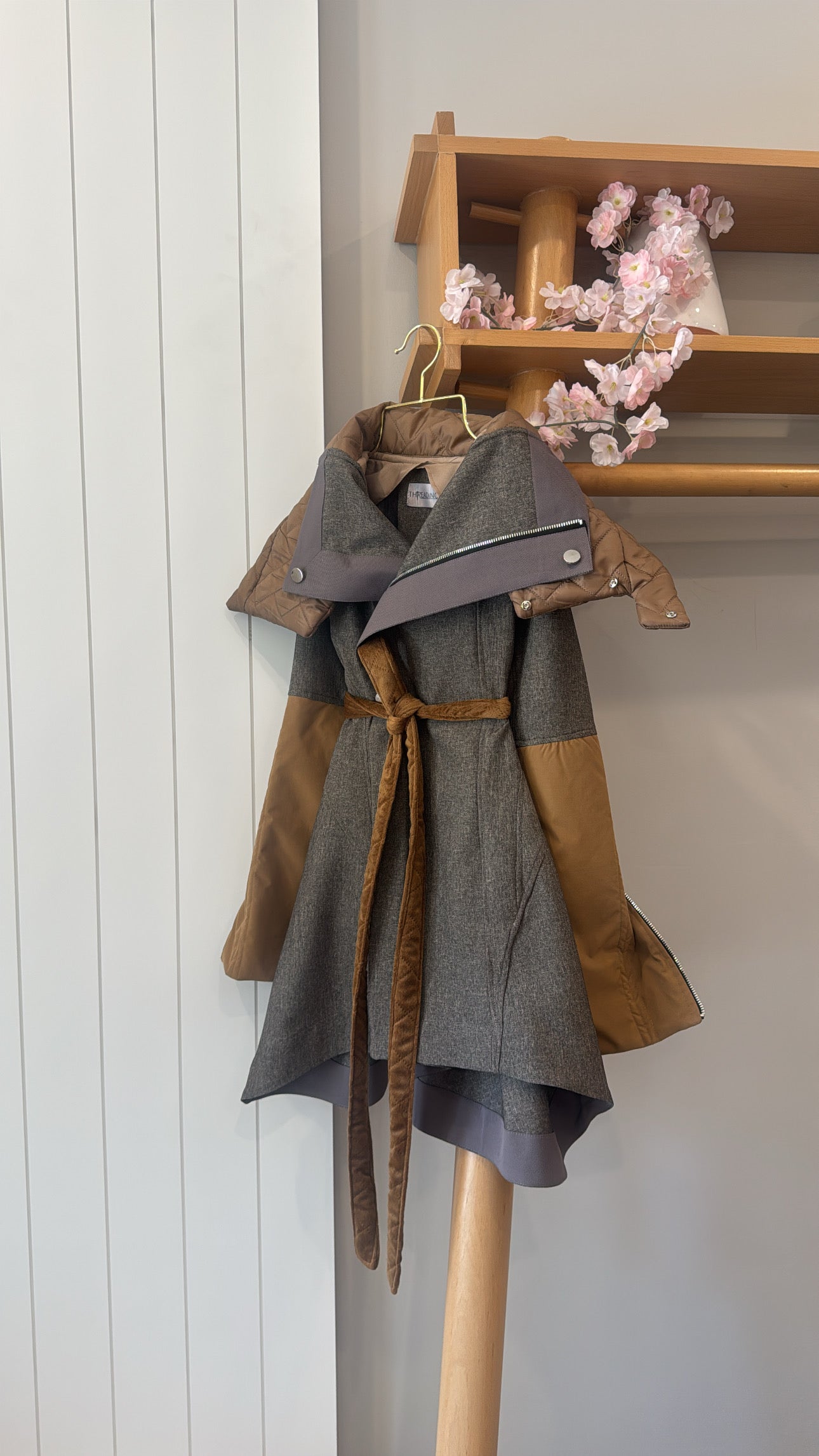 Winter is coming! This piece is so so so stylish! with a little huge collar. We need the short front side length.